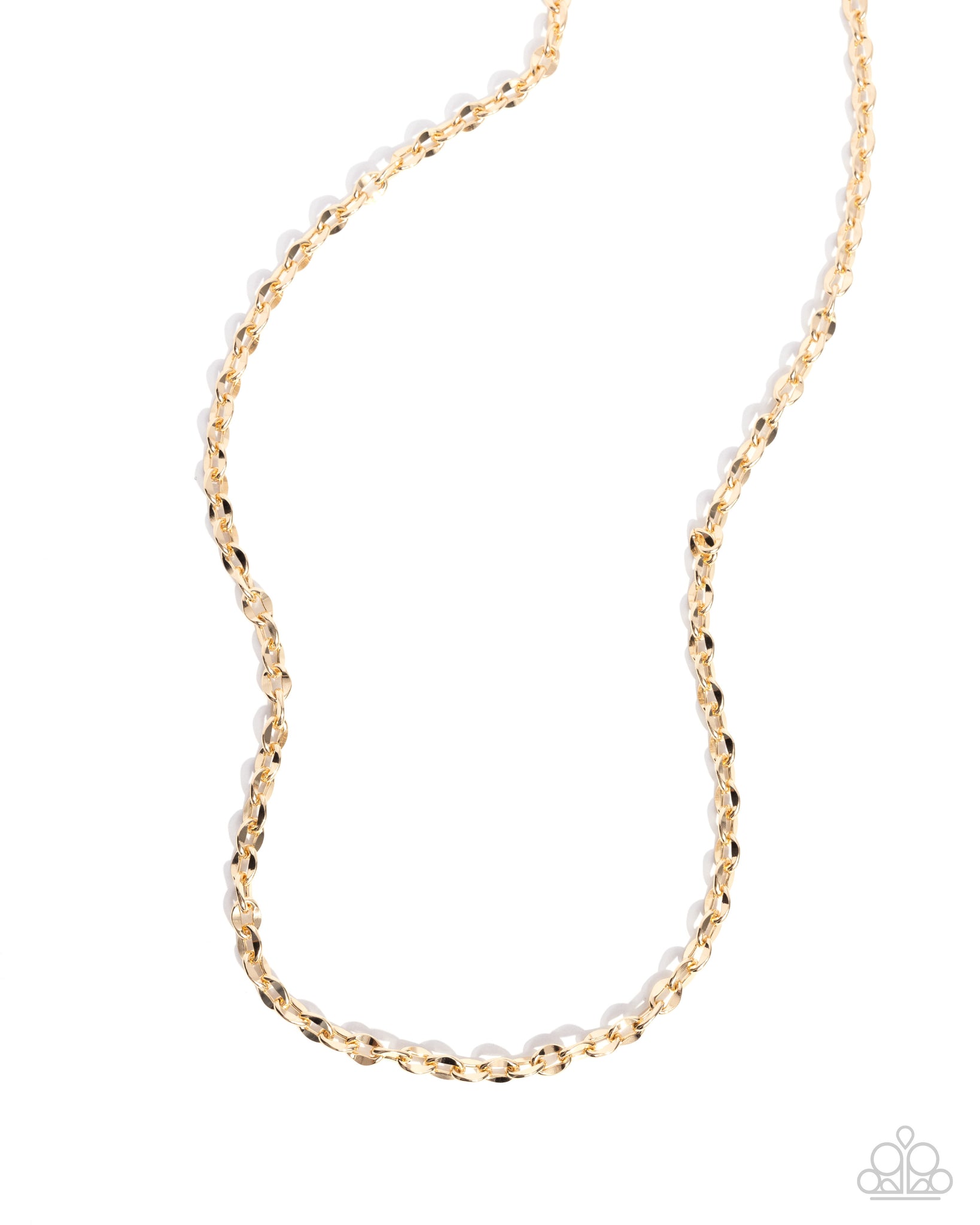 Featuring a highly reflective sheen, a gold cable chain extends below the neckline for a charismatic display. Features an adjustable clasp closure.