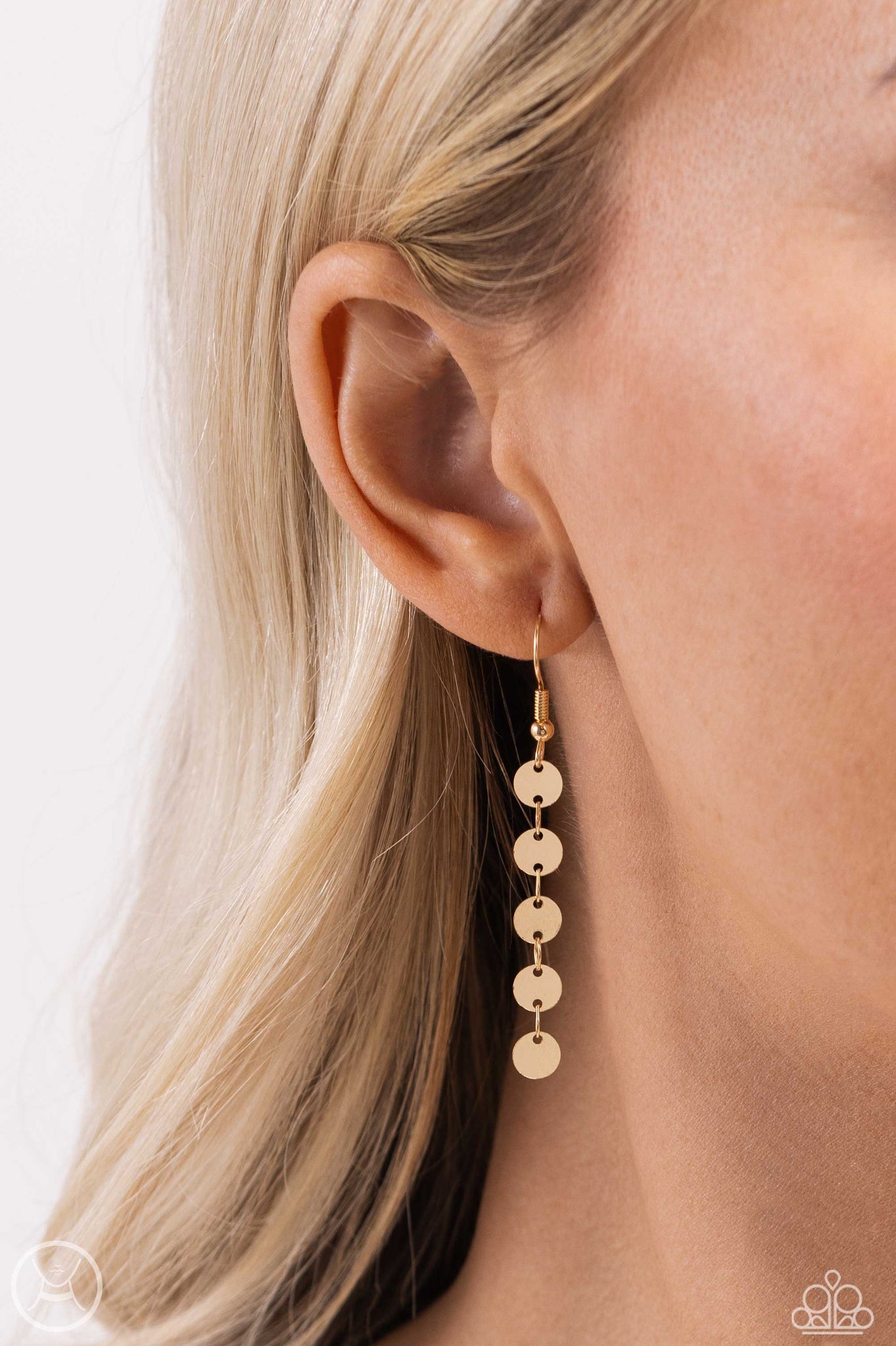High-sheen gold discs trickle around the collar and down the chest, creating an edgy lariat-styled fringe that sways and shimmers. Features an adjustable clasp closure.