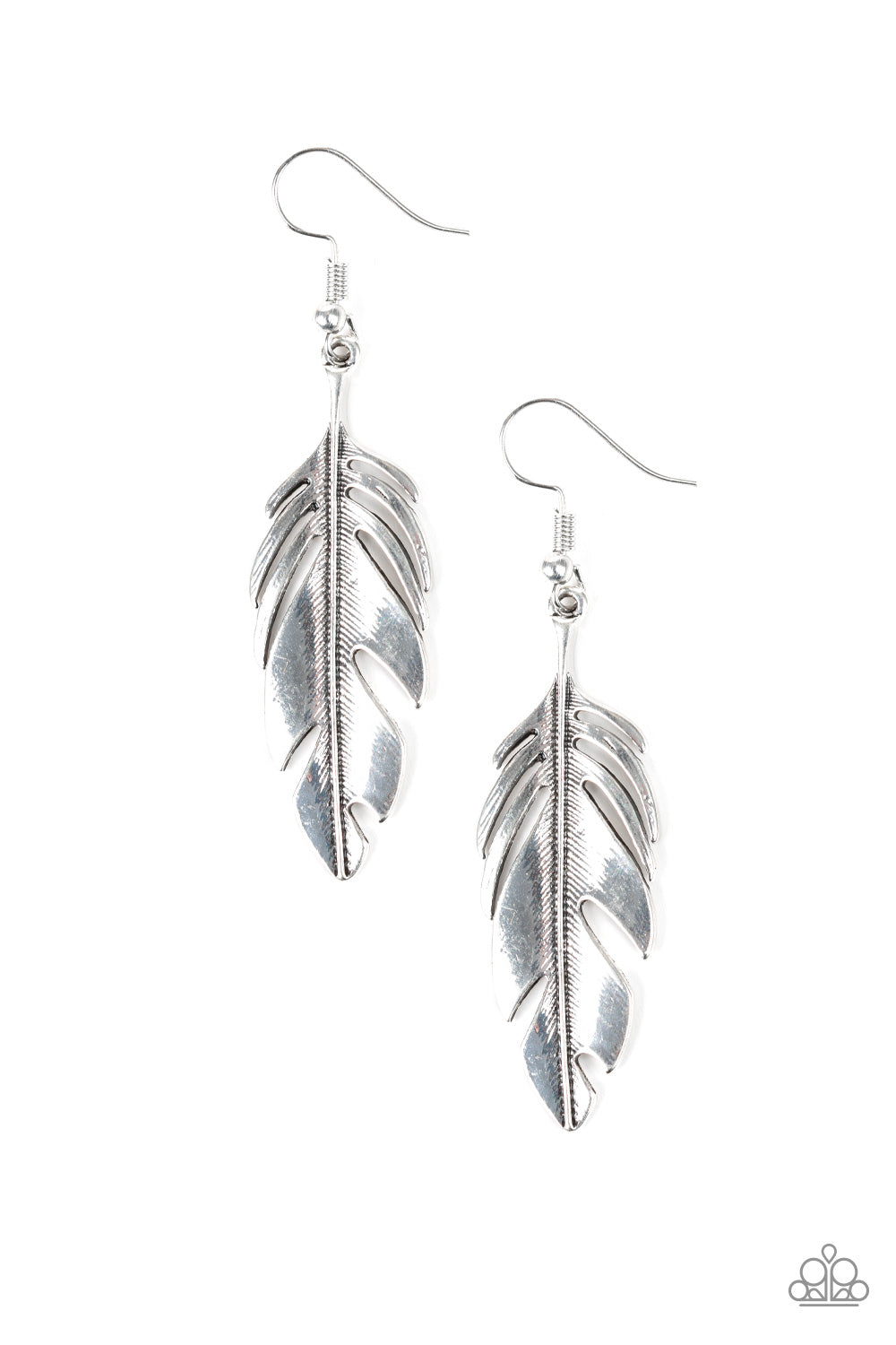 Featuring lifelike detail, a dainty silver feather swings from the ear for a seasonal look. Earring attaches to a standard fishhook fitting.