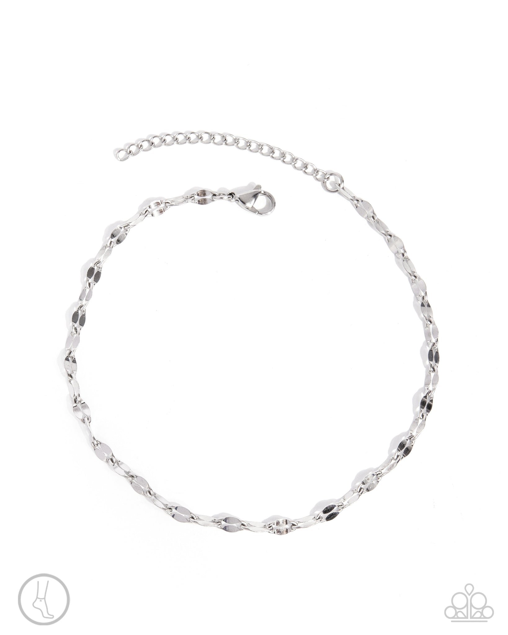 Featuring a glistening hue, abstract stainless steel silver links curl around the ankle for a handcrafted, harmonious look. Features an adjustable clasp closure.