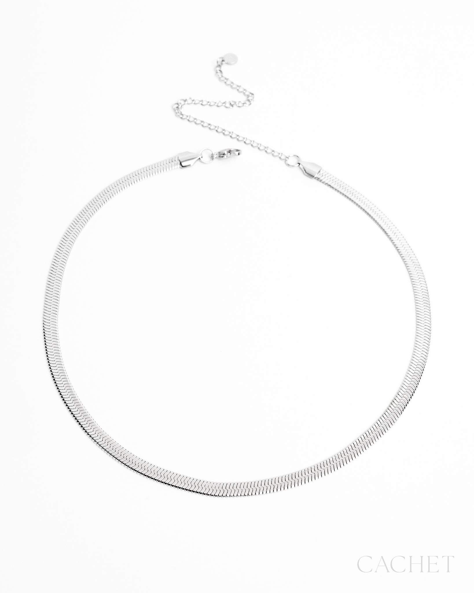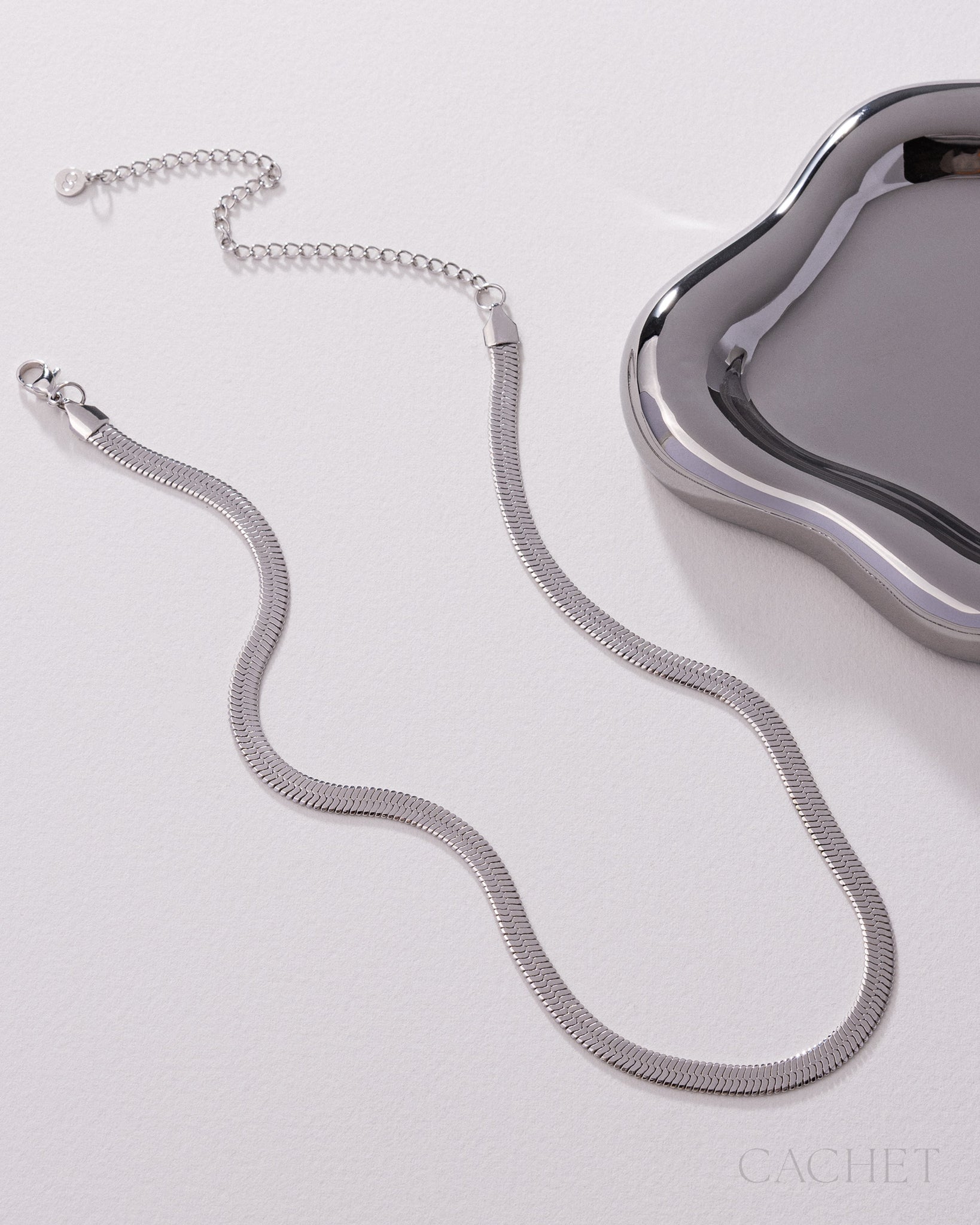 Like a bond that glides unspoken, the necklace "Sorelle" traces the collar in a fluid silver silhouette—a quiet emblem of elegance, closeness, and kinship.
