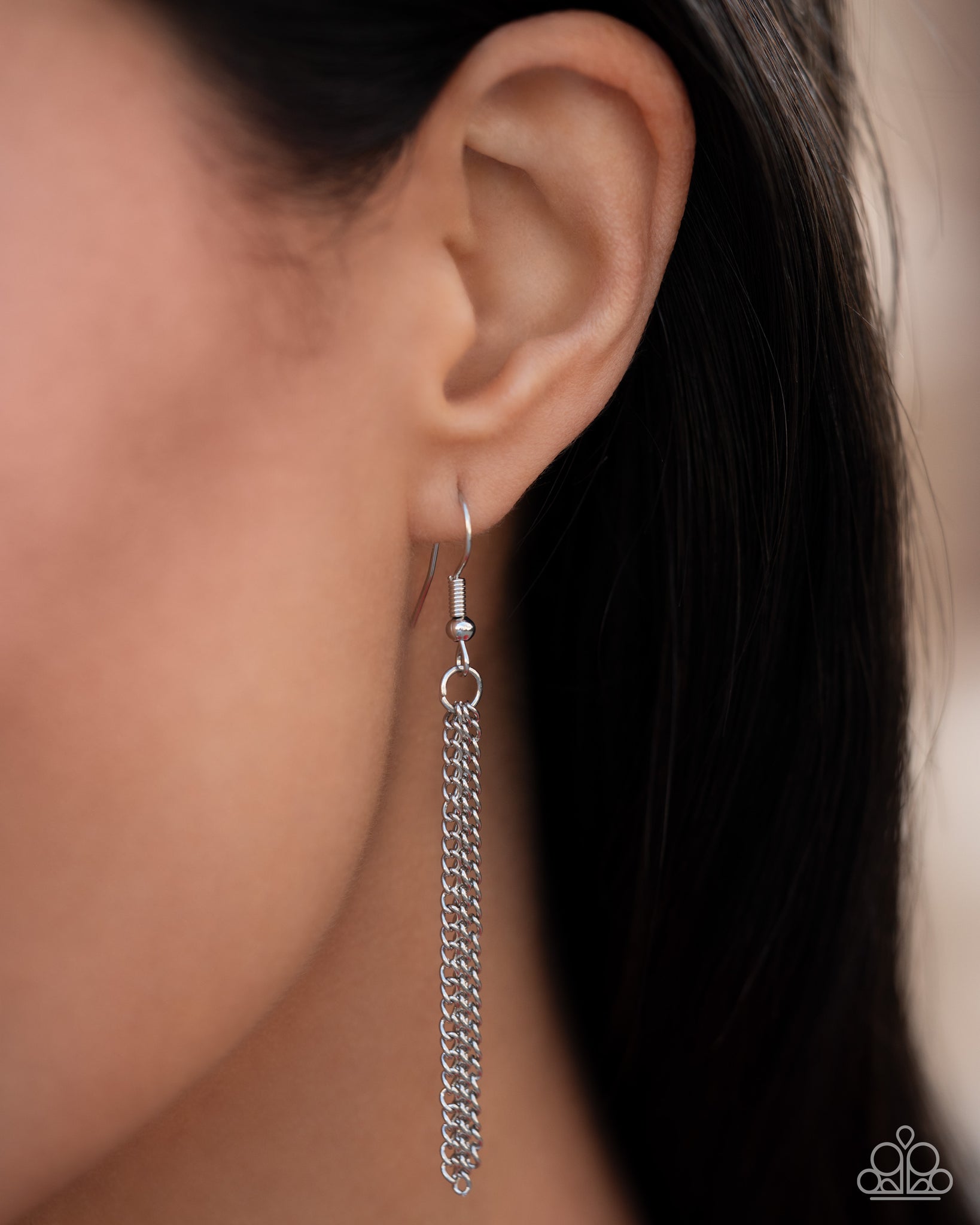 Featuring a dainty dusting of white rhinestones, a curved silver pendant slides along bold silver chained strands leading the eye to silver-studded and rope-textured silver ornaments and glistening silver chained tassels, creating a pendant full of attitude. Features an adjustable clasp closure.